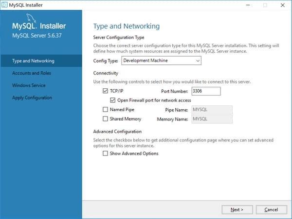 6、進行服務(wù)配置,MySQL默認(rèn)端口為3306,Next