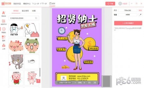 文字更換完畢后又可以在左側(cè)增加特效字、線條形狀和表情包等操作;如果自己有本地的圖片也可以通過上傳來對圖片進行相對應(yīng)的設(shè)計;