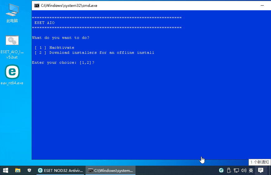 * 安裝ESET產(chǎn)品,運(yùn)行激活腳本,輸入[1] Hacktivate,稍等片刻