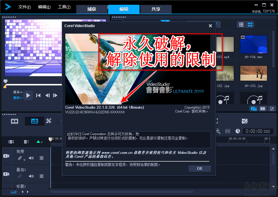 會聲會影2019旗艦版(Corel VideoStudio Ultimate )相信大家都知道是什么了,強(qiáng)大專業(yè)的視頻編輯、剪輯、處理軟件,會聲會影2019旗艦版擁有最完整的功能,小編帶給大家的是會聲會影破解版2019,是全網(wǎng)上為數(shù)極少的真正破解版,100%永久激活注意,支持64位系統(tǒng)。