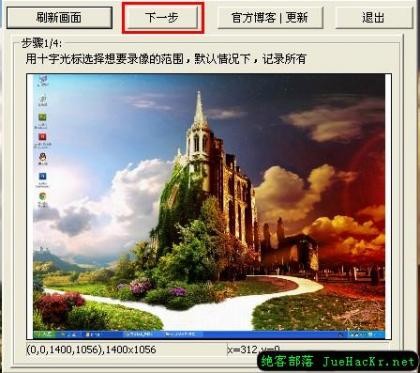 步驟1、打開錄屏大師之后,選擇要錄制的區(qū)域(默認錄制全屏)然后點擊下一步 按鈕