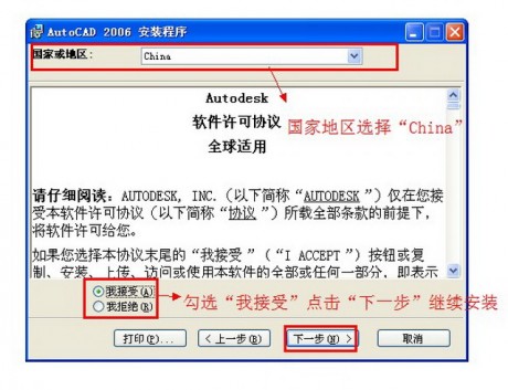 4第四步:進(jìn)入CAD2006 32位中文版的協(xié)議界面,見下圖: