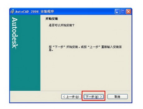 CAD2006 32位中文版的序列號“191-75444444” 輸入正確后點(diǎn)擊“下一步”繼續(xù)操作,如上圖: