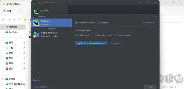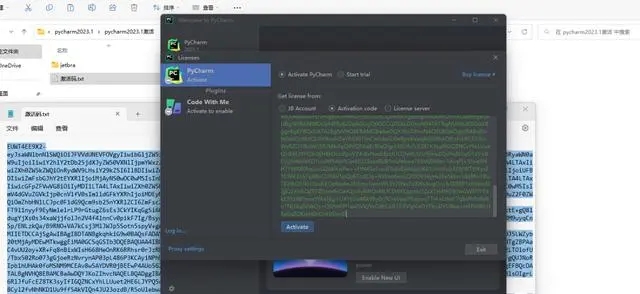 13、現(xiàn)在重新打開Pycharm,如果之前沒有關(guān)閉,一定要先重啟一下,然后點擊“Activation code”,把之前解壓得到的“激活碼.txt”文檔里的激活碼復(fù)制到Pycharm的輸入框里,點擊“Active”即可激活