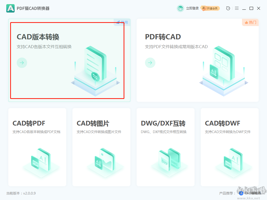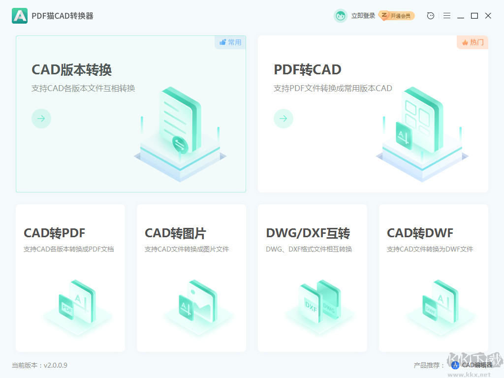 1、支持PDF轉(zhuǎn)CAD、CAD轉(zhuǎn)PDF、CAD轉(zhuǎn)圖片、CAD版本轉(zhuǎn)換等多種轉(zhuǎn)換模式;