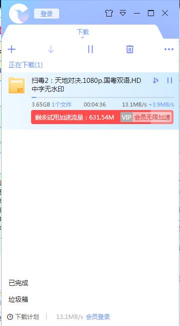 3、建議一個(gè)文件一次加速后下載完成,如文件非常大,可以多次加速;