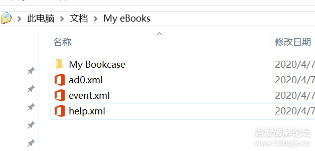 1、“文檔”,進(jìn)入到“My eBooks”的文件夾,里面有“ad0、event、help”三個(gè)類(lèi)型為XML的文件(也有可能不出現(xiàn)help,不影響)。
