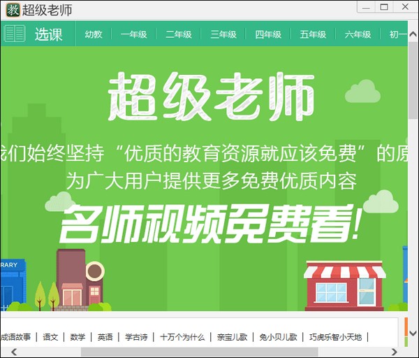 超級(jí)老師視頻學(xué)習(xí)軟件是一款包含了幼教、一年級(jí)、二年級(jí)、三年級(jí)、四年級(jí)、五年級(jí)、六年級(jí)、初1~初3以及高中各階段的隨堂視頻,里面的視頻教學(xué)內(nèi)容完全免費(fèi),大家可以放心觀看!