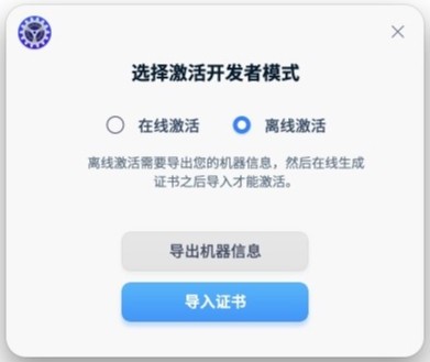若選擇離線模式,根據(jù)提示下載證書,系統(tǒng)導(dǎo)入證書后,即進(jìn)入開發(fā)者模式。