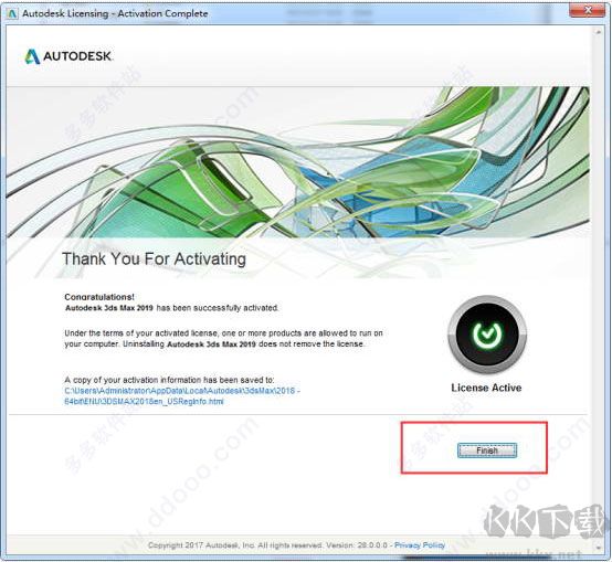 現(xiàn)在就可以復(fù)制激活碼到激活界面,并點(diǎn)擊下一步。這樣就完成了Autodesk產(chǎn)品的注冊(cè)了。