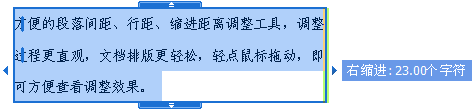 再有,值得一提的還有段落布局“文字八爪魚”工具,它通過拖動段落調整框上的上下左右小箭頭,即可輕松調整段前間距、段后間距、左縮進以及右縮進;還可通過移動段落前兩行行首的小豎線來調整首行縮進、懸掛縮進。