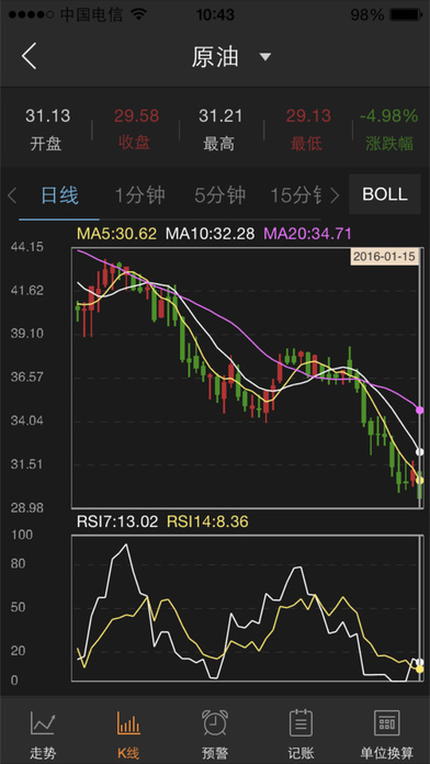 金智慧是一款專業(yè)的投資理財(cái)軟件,軟件為用戶提供了第一手原油貴金屬行情,幫你掌握一切貴金屬、原油石油、外匯貨幣交易所的行情走勢(shì)。金智慧軟件提供了走勢(shì)、K線、預(yù)警、記賬、單位換算等功能,可以幫助用戶更好的進(jìn)行投資理財(cái)。KK下載站為您提供金智慧,關(guān)注原有貴金屬行業(yè)投資方向的朋友可以下載使用哦!