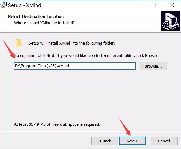 4、選擇安裝位置,建議直接將C改為D即可,點(diǎn)擊Next按鈕,如圖: