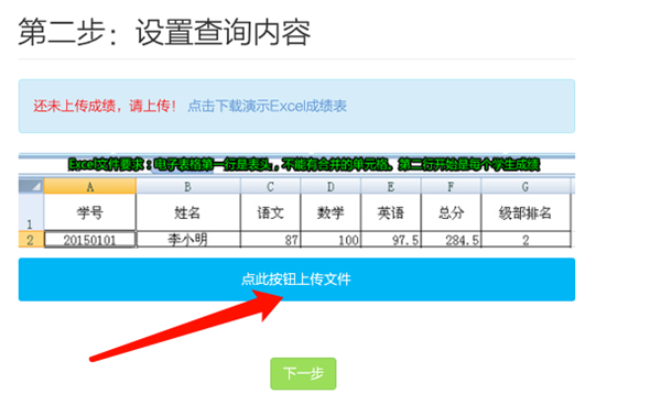 根據(jù)任務(wù)需求,設(shè)置本次考試成績(jī)查詢的名稱,比如“三年級(jí)期中考試成績(jī)查詢”(注:每次查詢只能上傳一個(gè)電子表格文件,如果您學(xué)校有多個(gè)級(jí)部,建議您將每個(gè)級(jí)部合并在一個(gè)文件的同一個(gè)工作表中,每個(gè)級(jí)部分別新建查詢。)
