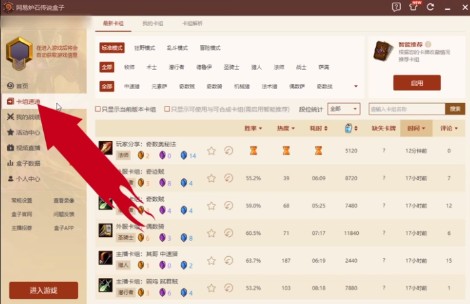 點(diǎn)擊“卡組速遞”,查看比較流行的卡組。也可點(diǎn)擊其他選項(xiàng),查看對(duì)應(yīng)信息。