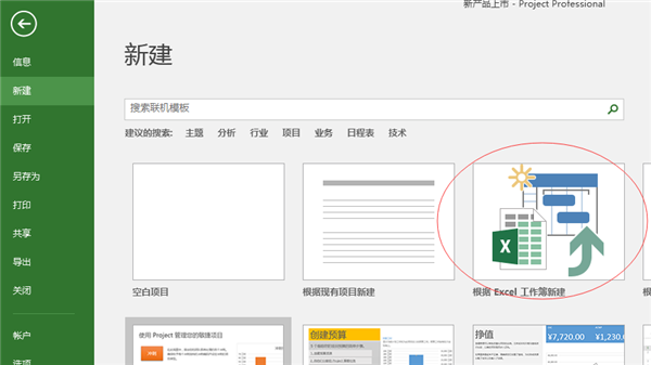 第一步:點擊Project 2016,然后點擊新建---根據(jù)Excel工作蒲新建
