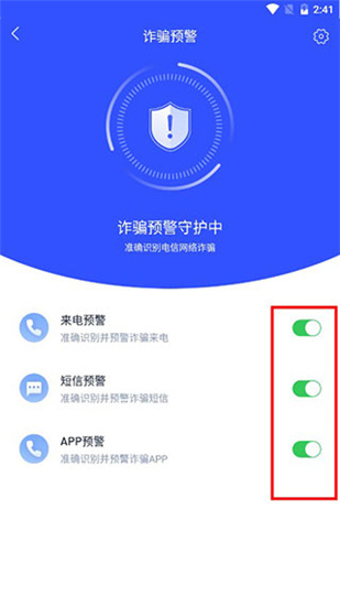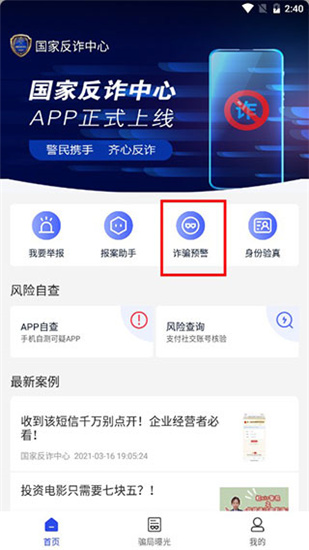 4、注冊(cè)完成后直接進(jìn)入軟件主界面,點(diǎn)擊詐騙預(yù)警