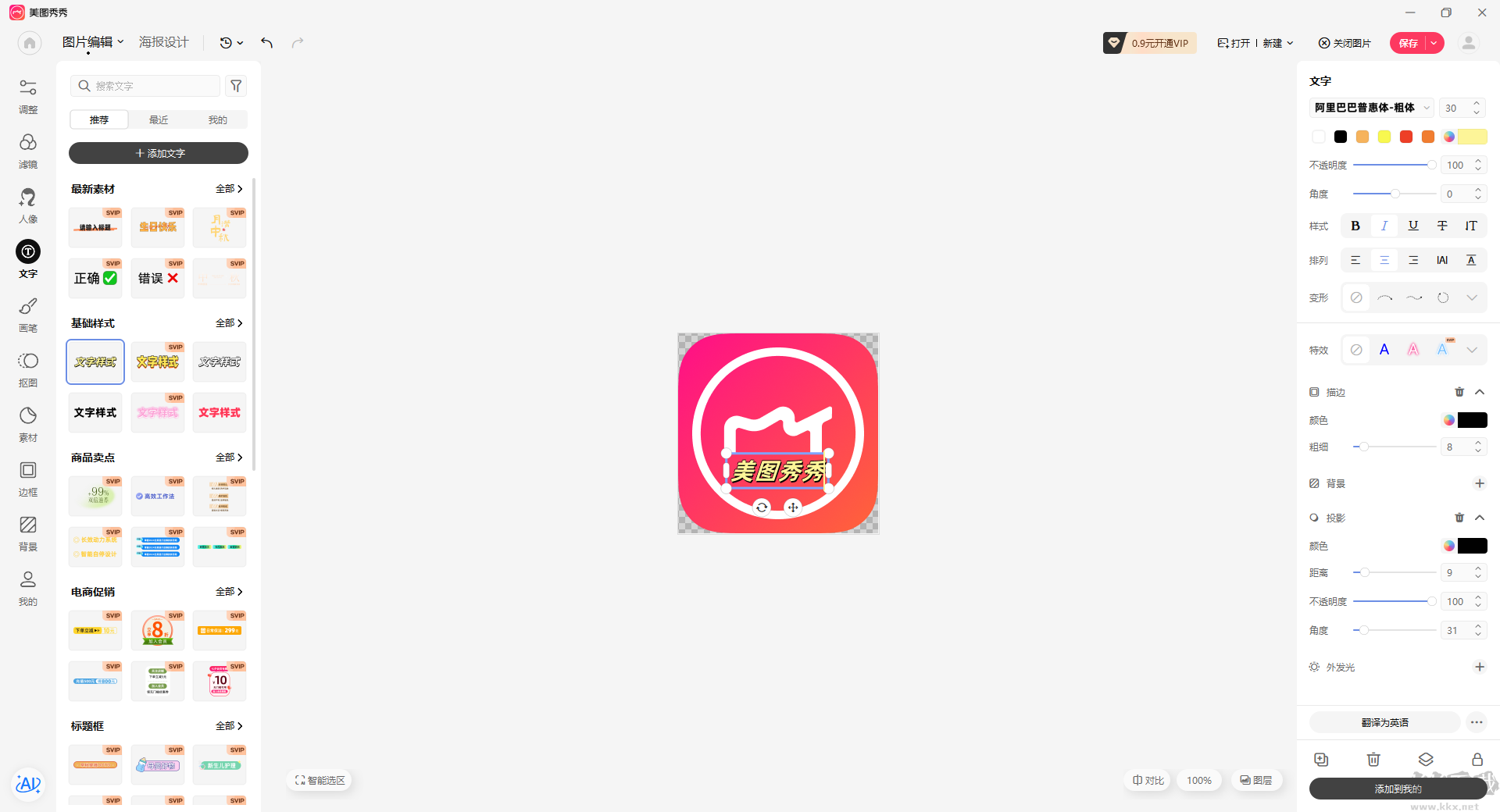 美圖秀秀是一款強大的圖片處理軟件,擁有齊全的圖片編輯功能,可以調(diào)整圖片的大小、dpi,為圖片添加文字、貼紙、濾鏡,還可以使用畫筆在圖片上任意涂鴉。其中添加文字是很常用的功能,可以更詳細的描述圖片及相關(guān)內(nèi)容,接下來就教大家怎么給圖片添加文字。