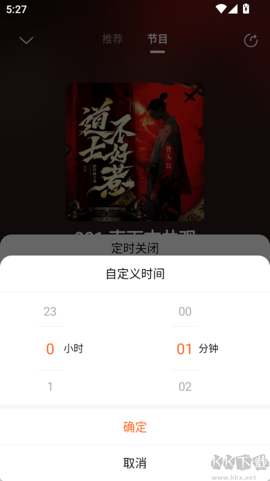 3、在自定義界面通過上下滑動來選擇時間,點擊確定完成設(shè)置,在這個時間后停止播放了