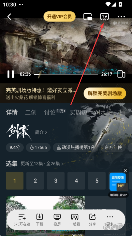 1、打開騰訊視頻app,播放想要投屏的視頻