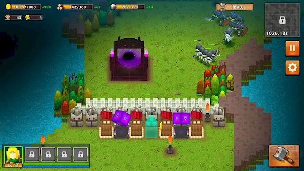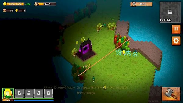 英雄外出探圖(并負(fù)責(zé)防止哥布林進(jìn)攻),在大本營周圍設(shè)能量塔,建設(shè)建筑