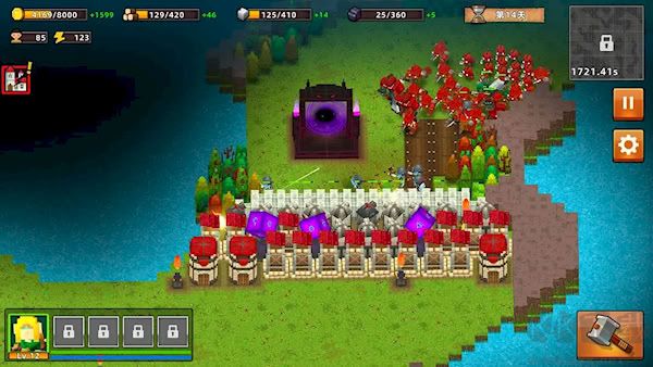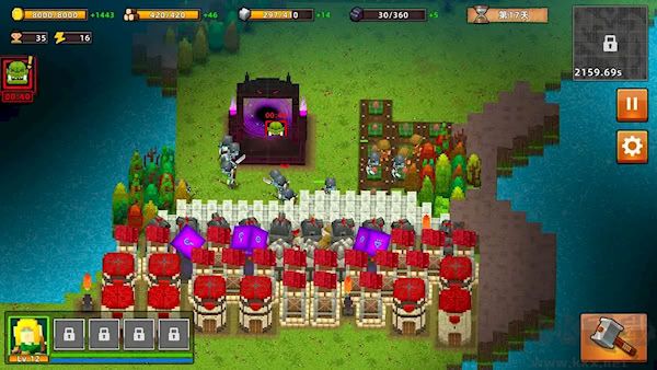 把防御塔和后面的建筑升級,怪也幾乎打不到城墻了