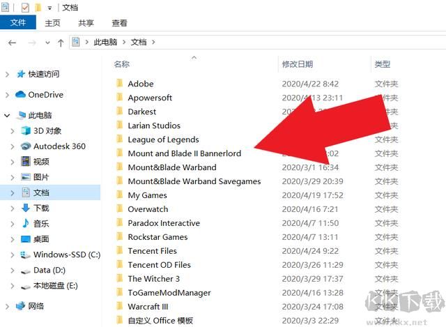 打開文檔找到騎砍二游戲的文件夾