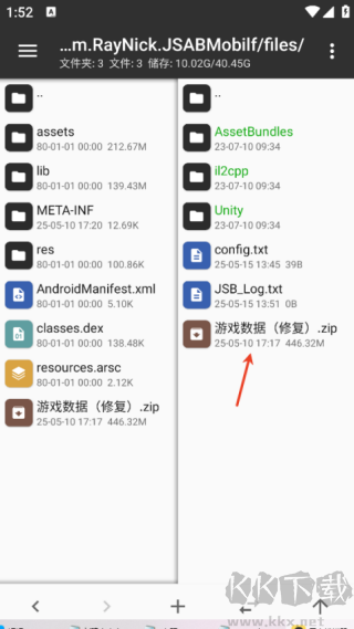 8、在右邊再次點(diǎn)擊數(shù)據(jù).zip 解壓,重復(fù)文件選擇替換。